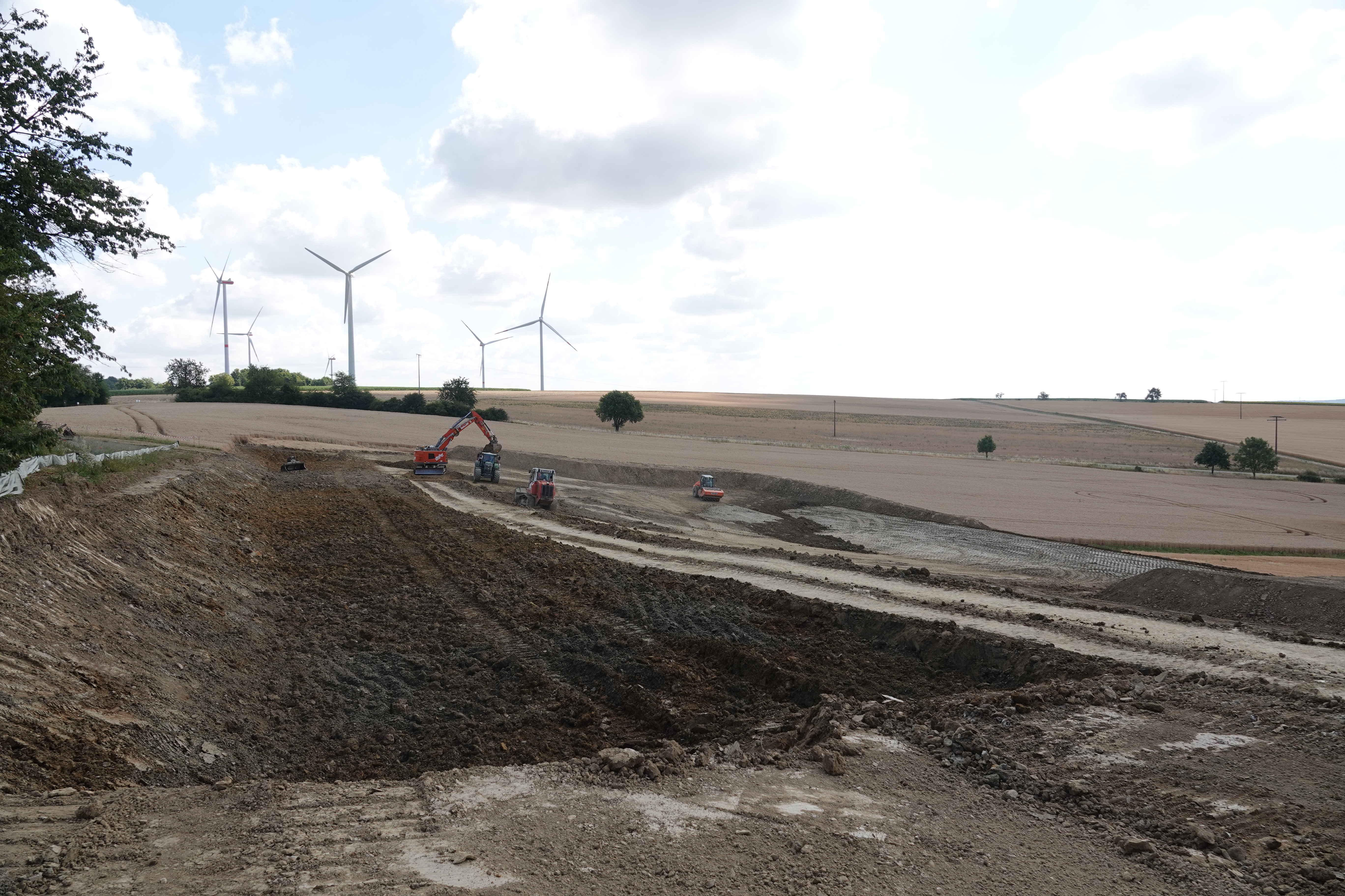 Bereits im Vorfeld des Spatenstichs wurden erste Bauarbeiten umgesetzt: Der Oberboden wurde abgetragen und ein Großteil der Erdbewegungen abgeschlossen. Die künftigen Lager- und Kranstellflächen sowie die Fläche für das Fundament der neuen Anlage nehmen bereits Gestalt an.