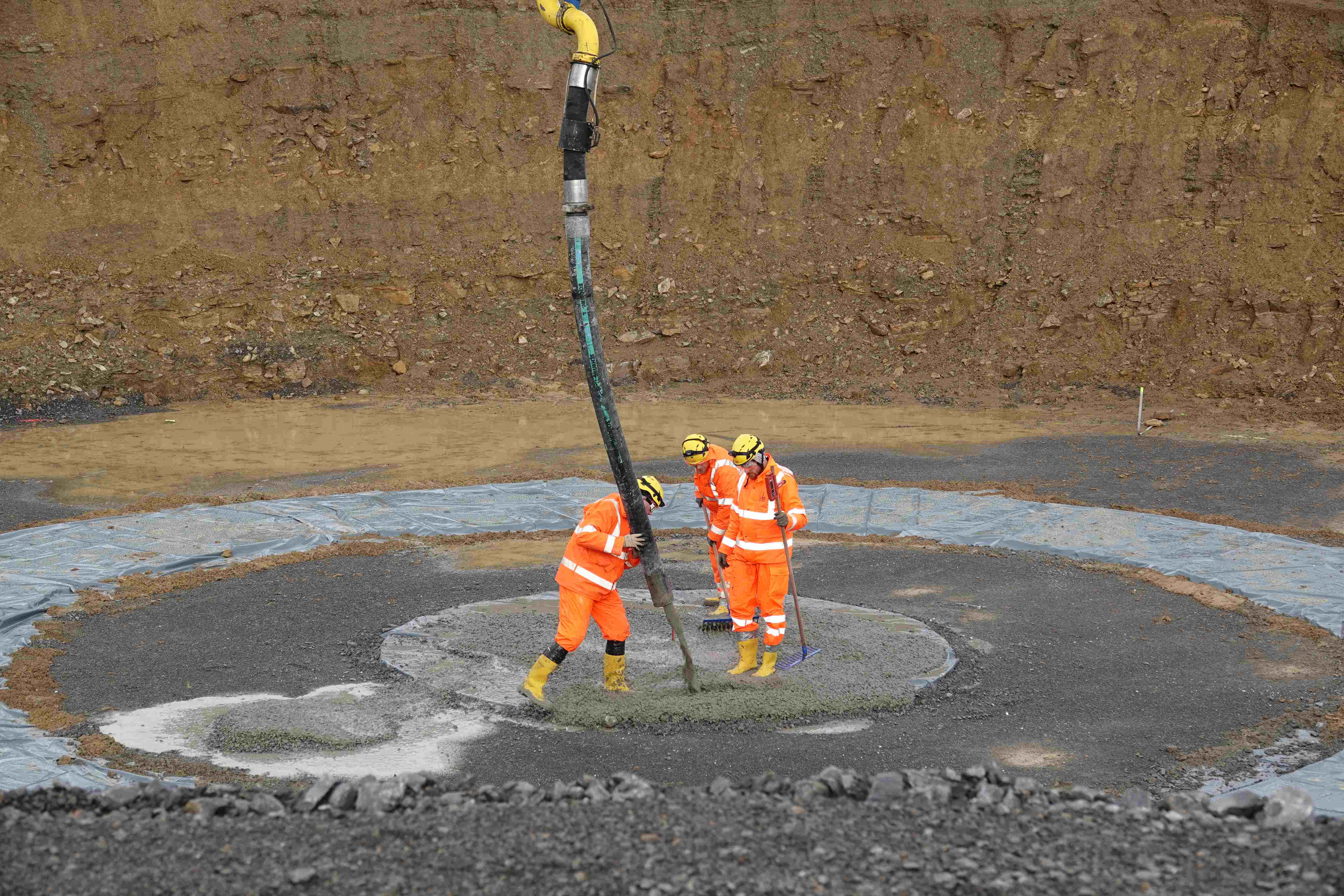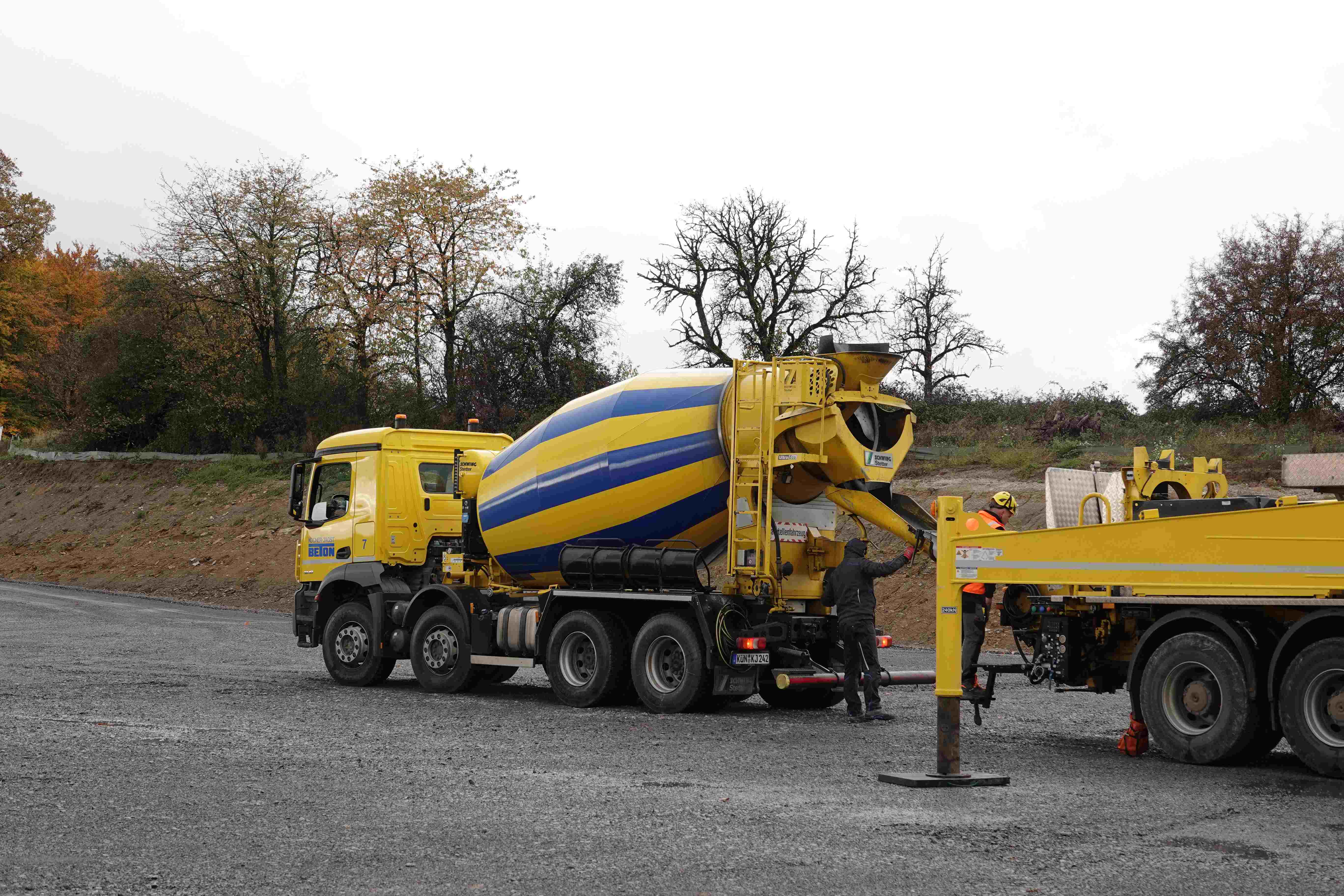 Durch akribische Vorbereitung und die gute Zusammenarbeit aller Beteiligten konnten durchgehend von 06:00 Uhr bis 17:00 Uhr insgesamt 816m³ Beton eingebaut werden. Ein konstanter Nachschub wurde von 22 Fahrmischern gewährleistet (14 aus Dörzbach und 8 aus Niedernhall), die im Kreisverkehr zwischen den Betonwerken und der Baustelle gependelt sind.