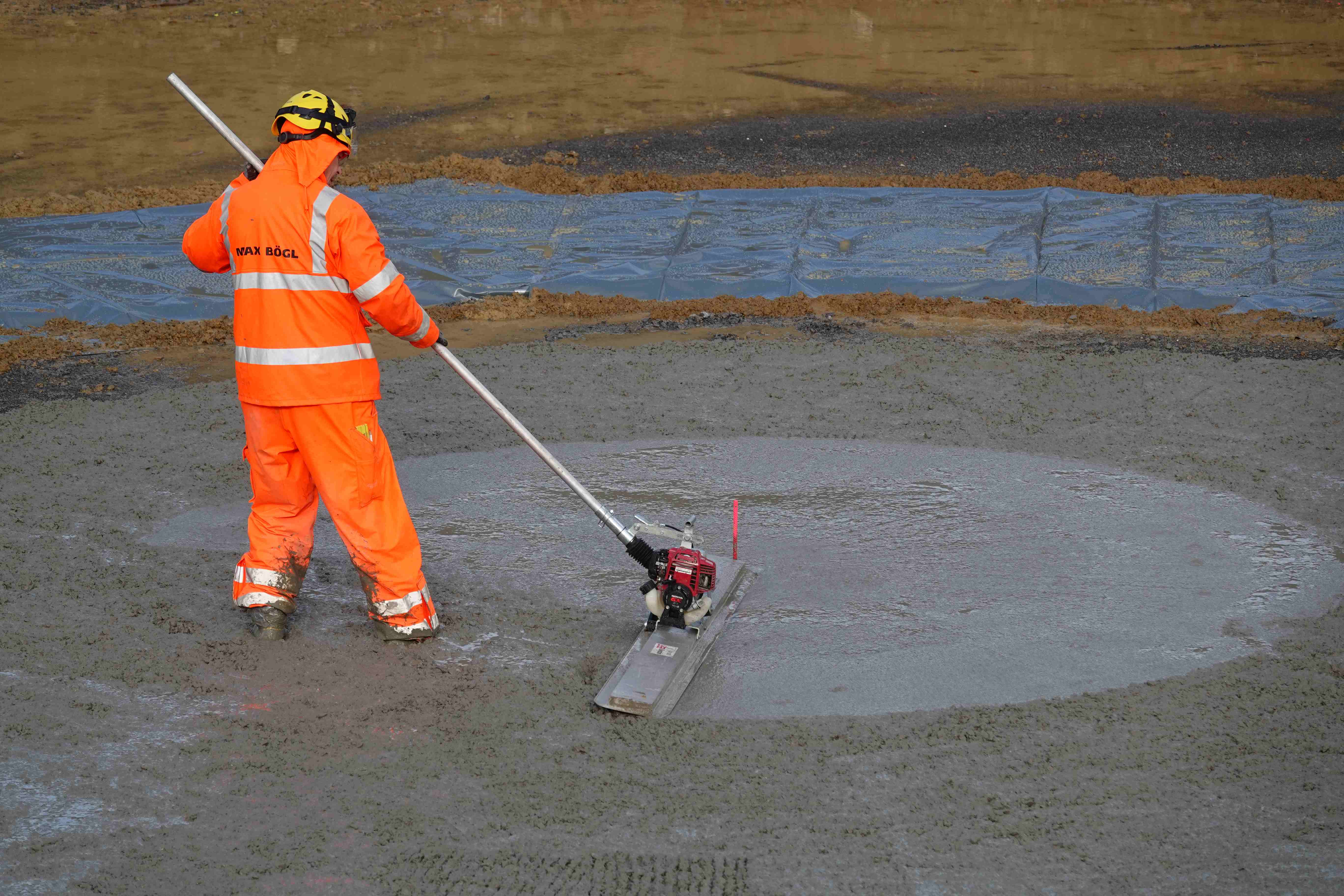 Die Betonagearbeiten wurden am späten Abend mit dem Glätten der Oberflächen abgeschlossen.