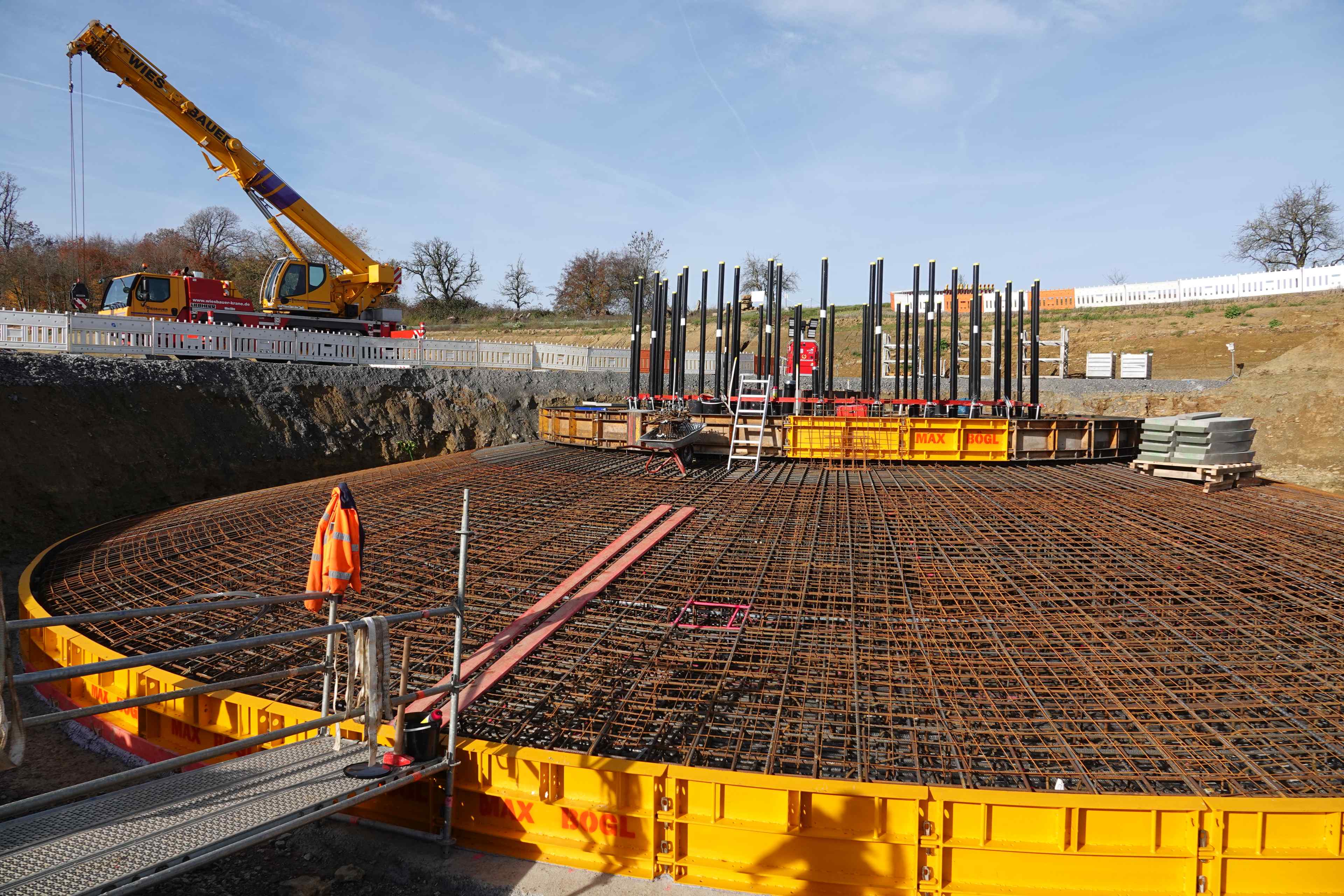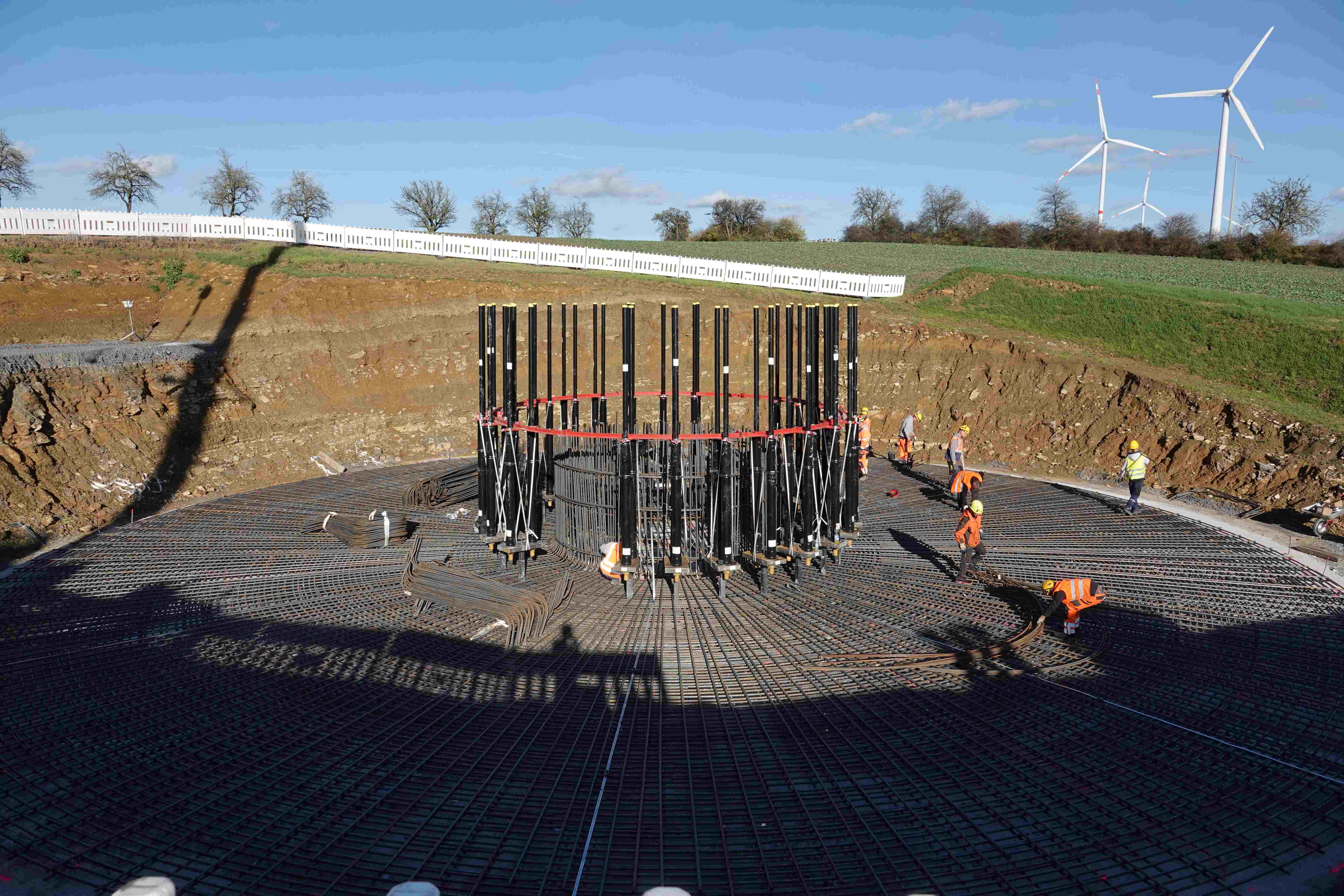 Die Herstellung der Fundamentbewehrung wurde heute vollständig abgeschlossen und durch die erfolgreiche Abnahme des TÜV Süd zur Betonage freigegeben.